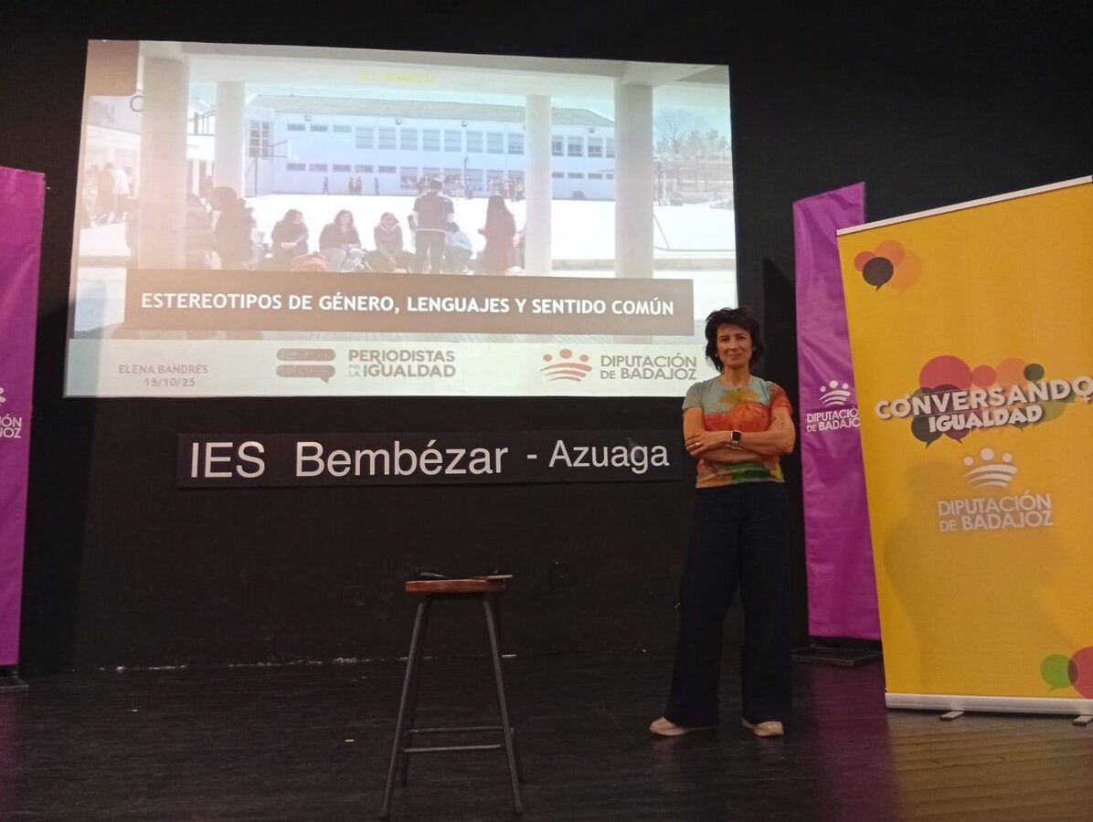 Hoy hemos asistido en el IES Bembézar a la charla, a cargo de Elena Bandrés, profesora en el Grado de Periodismo, Comunicacion Audiovisual y Publicidad de la Universidad de Zaragoza, con el programa #ConversandoEnIgualdad, impulsado por la @dipbadajoz.