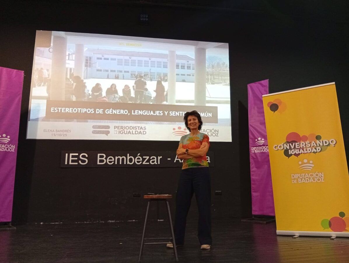 Hoy hemos asistido en el IES Bembézar a la charla, a cargo de Elena Bandrés, profesora en el Grado de Periodismo, Comunicacion Audiovisual y Publicidad de la Universidad de Zaragoza, con el programa #ConversandoEnIgualdad, impulsado por la @dipbadajoz.