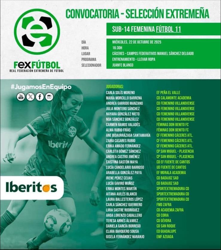 Nuestra alumna Gisela Fernández Naranjo, de 2º de ESO ha sido convocada para formar parte de la Selección Extremeña Sub-14 Femenina de fútbol.